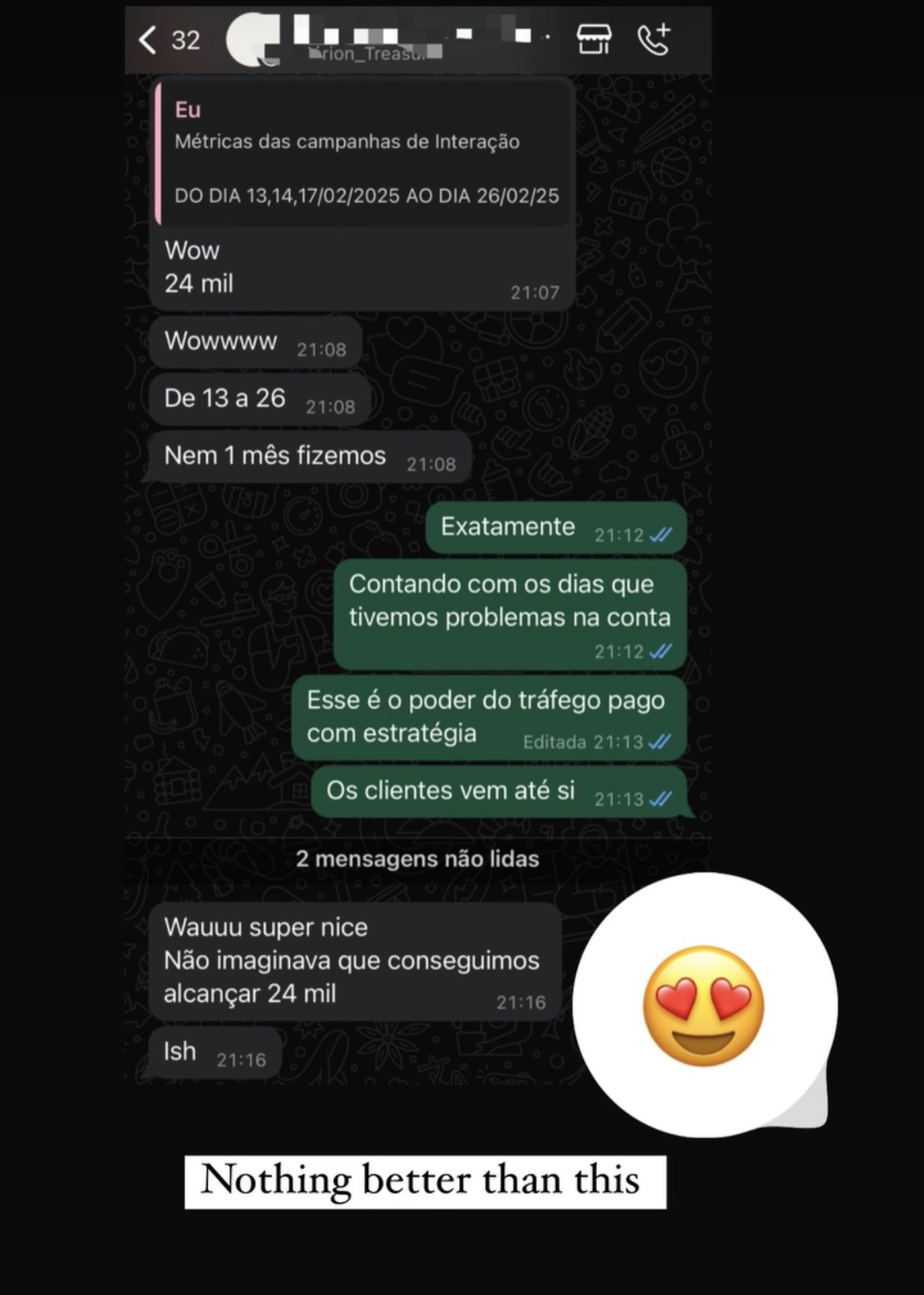 O tráfego bem feito começa a gerar resultado rapidamente, mas os melhores resultados vêm com ajustes e consistência. Nosso compromisso é construir crescimento sólido, não picos passageiros.
